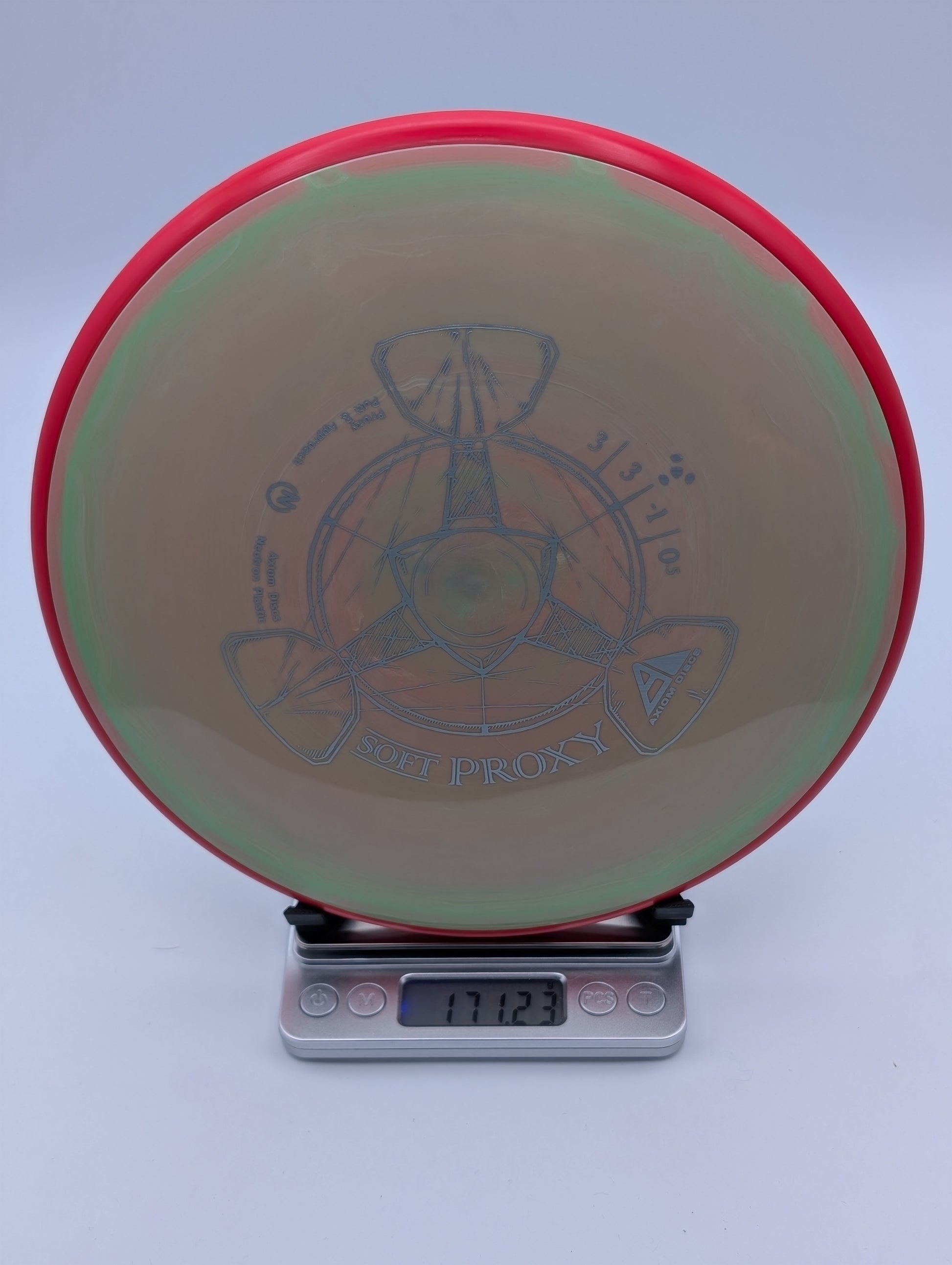 The Proxy offers a smooth and gradual fade, making it an ideal putter for a wide range of throwers. Its high-speed turn potential allows for manipulation of its lines with varying levels of power, making it a versatile and essential addition to any Axiom thrower's bag. At high speeds, the Proxy maintains a straight flight, while at low speeds it exhibits the straight tendencies of a more understable model. Its reliable neutral stability makes it a valuable tool for any thrower's arsenal.